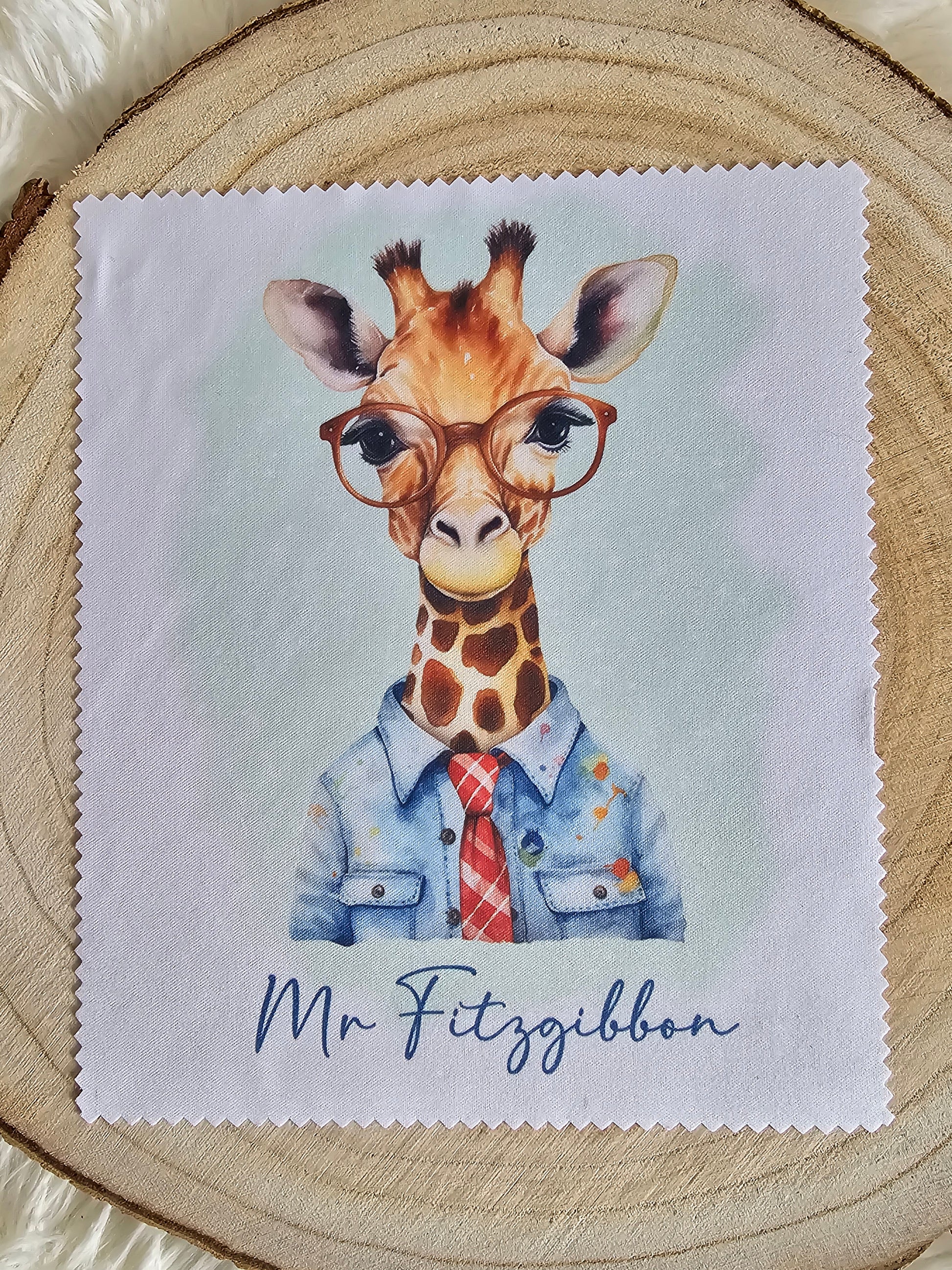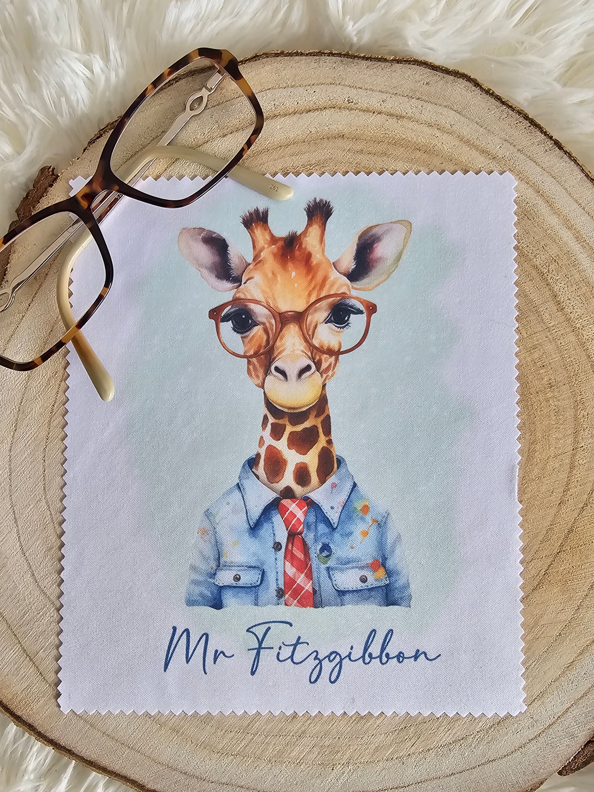 Personalised Giraffe in Glasses & Tie Lens/Glasses Cloth